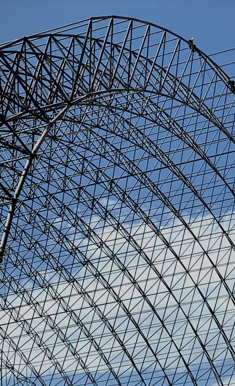 球形網(wǎng)架施工方案 1、工程概況和總體部署 網(wǎng)架采用正放四角錐形式,采用螺栓球接點(diǎn),采用普通鋼管材,采用兩側(cè)焊接水平支座...